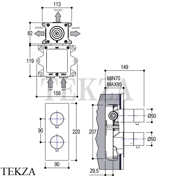 Термостат для душа 2-3 потока Ritmonio Diametro35 S, внешняя часть.