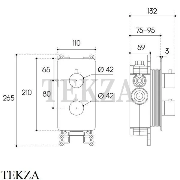 Смеситель термостатический скрытого монтажа, 3 потребителя Aqueduto ACENO.