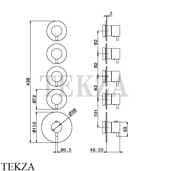 Термостат для душа на 4 потребителя Newform XT, внешняя часть.