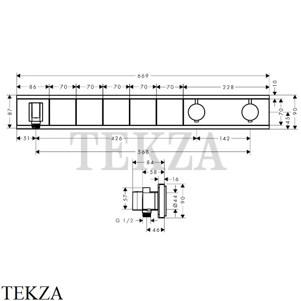 Термостатический модуль для душа Hansgrohe RainSelect с 5 кнопками, СМ, внешняя часть.