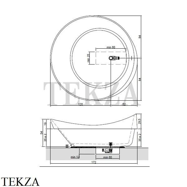 Полувстраиваемая монолитная круглая ванна Antonio Lupi DUNE2.