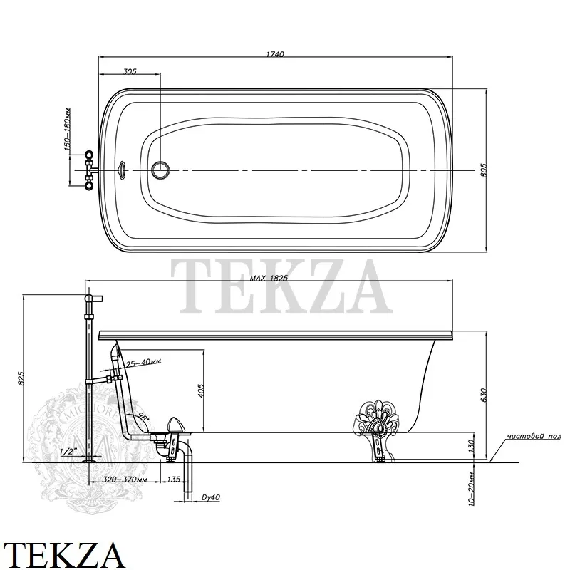 Стоимость указана в исполнении: ножки и слив – хром 24631.