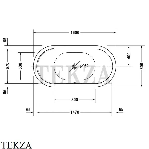 Ванна овальная, отдельностоящая Duravit Starck с одним наклоном спины, санитарный акрил 5 мм.