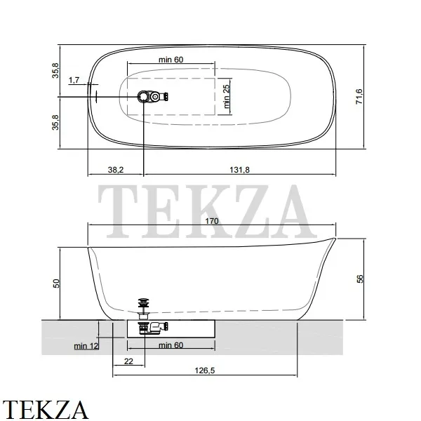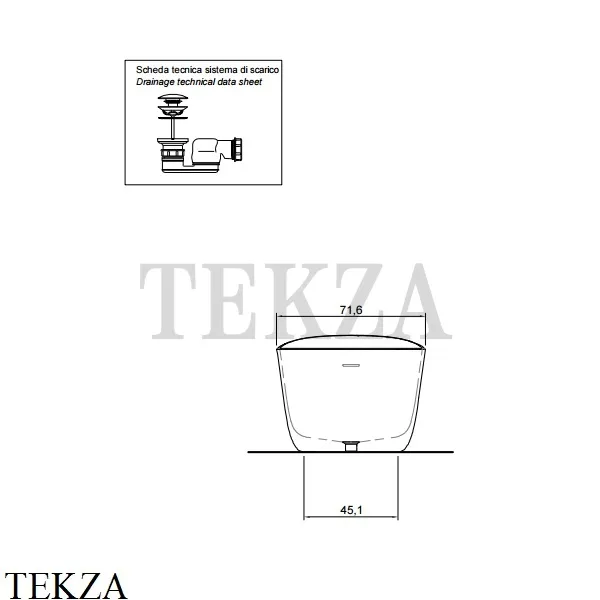 Стоимость указана за ванну Dafne в комплекте с нажимным донным клапаном, сифоном и гибким шлангом.