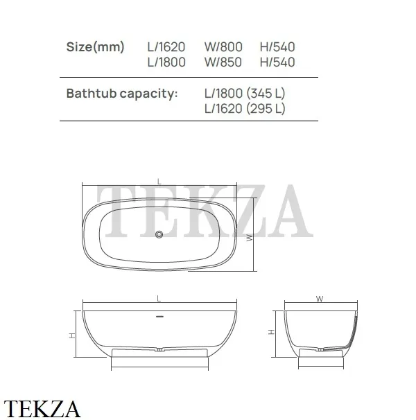 Ванна отдельностоящая скругленная 162х80 Glasstech прозрачная смола Dea Design Modern.