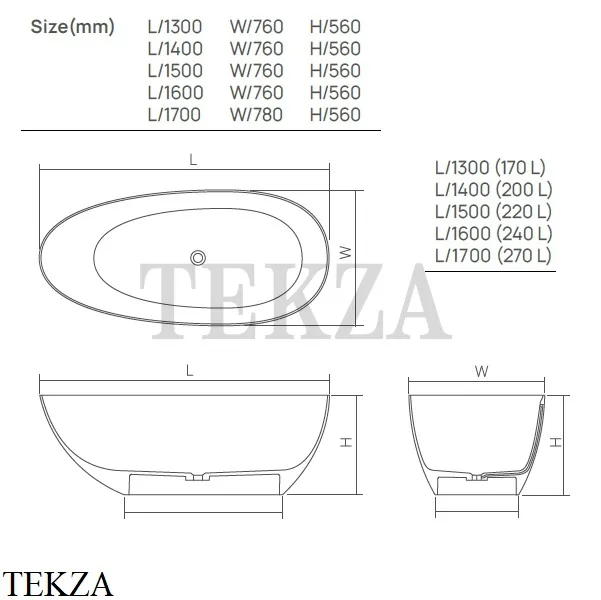Ванна отдельностоящая овоидной формы 170х78 Solid Surface Dea Design Edge.