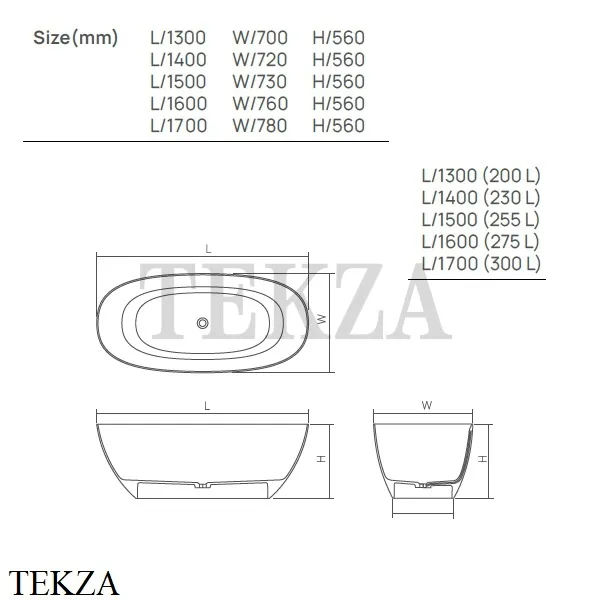 Ванна отдельностоящая овальная 170х78 Solid Surface Dea Design Edge.