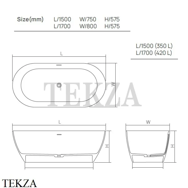 Ванна отдельностоящая овальной формы 170х80 Solid Surface Dea Design Edge.