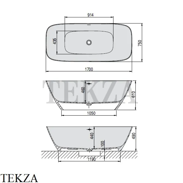 Монтажная высота ванны: 610 мм