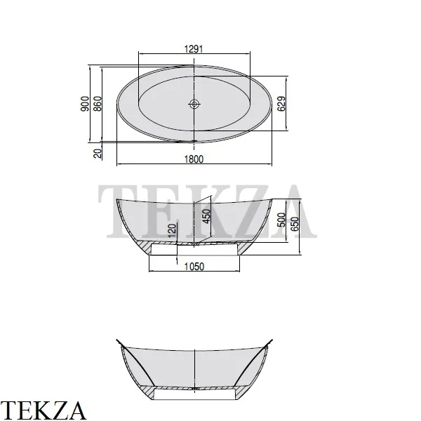 Овальная ванна Hoesch NAMUR, отдельностоящая версия 4402, с облицовочной панелью.