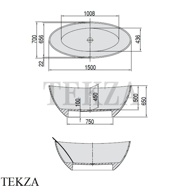 Овальная ванна Hoesch NAMUR, отдельностоящая версия 4405, с облицовочной панелью.