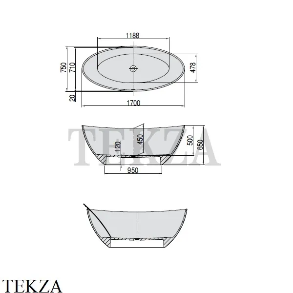 Овальная ванна Hoesch NAMUR, отдельностоящая версия 4400, с облицовочной панелью.