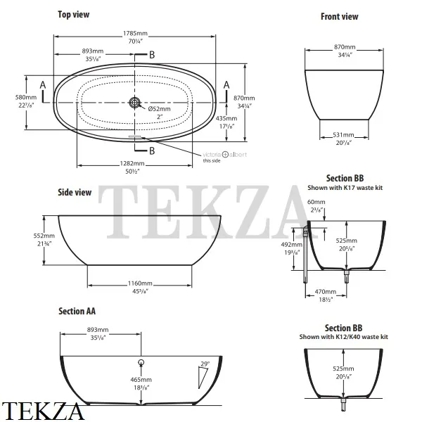 Свободностоящая ванна Victoria+Albert Barcelona Classic 178 из композитных материалов (Quarrycast), белый матовый.
