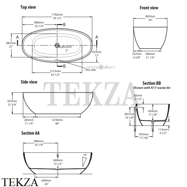 Свободностоящая ванна Victoria+Albert Barcelona 180 из композитных материалов (Quarrycast), белый матовый.