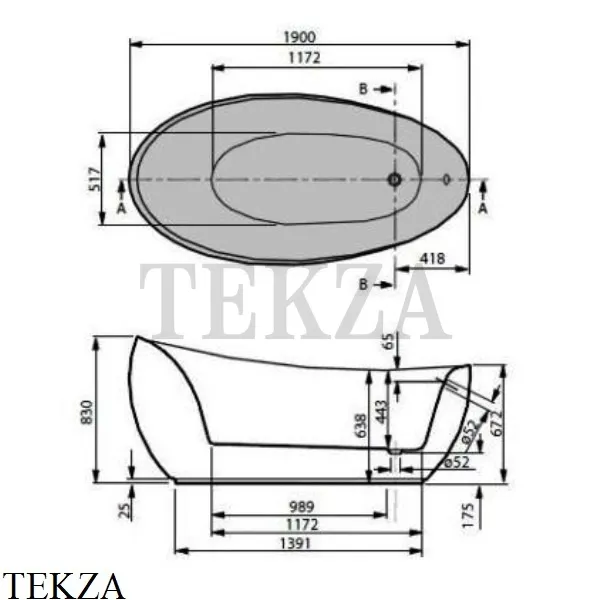 В комплекте с удлиненным комплектом слив/перелив (хромированным).UBQ 194 AVE 9W1V - Aveo, отдельностоящая, без краев, вкл. предварительно смонтированный сток и перелив (хромированный)