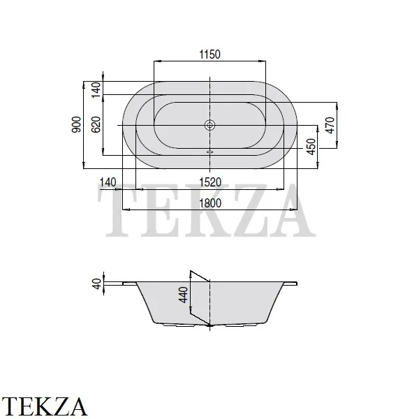 Акриловая встраиваемая ванна Hoesch Philippe Starck Edition 1, овальная версия 6020.