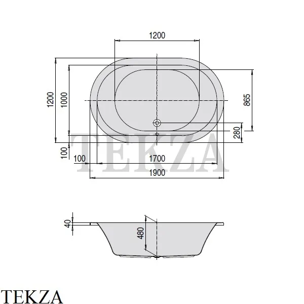 Акриловая встраиваемая ванна Hoesch SCELTA, овальная версия 3679.