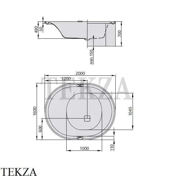 Овальная ванна Hoesch ERGO+, встраиваемая версия 6437.