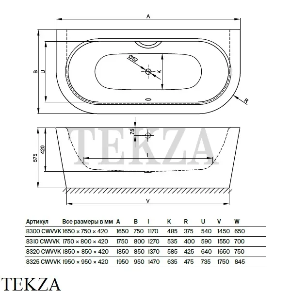 Ванна изготовлена из титановой стали, покрыта эмалью - 3,5 мм.