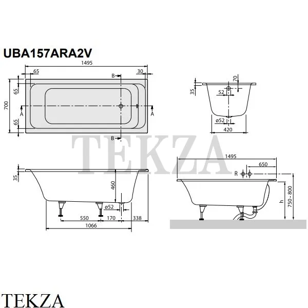 Встраиваемая ванна Villeroy & Boch Omnia ARCHITECTURA, акрил.