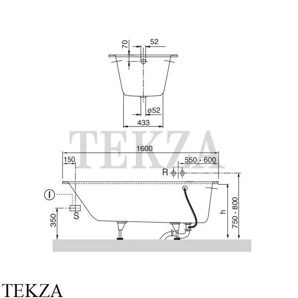 Комплект ножек для ванны (самоклеящихся) входит в поставку, от 130 до 180 мм..