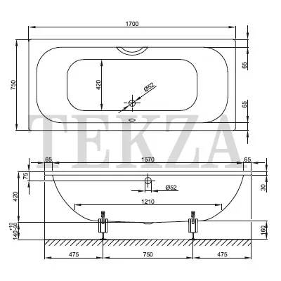Ванна прямоугольная BETTE BETTEDUETT из стали.