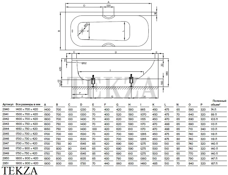 Размер ванн