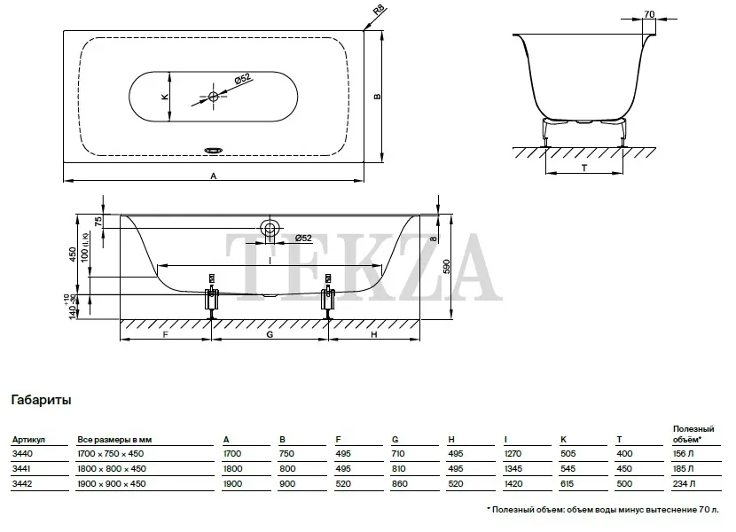 Размер ванн