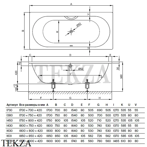 Ванна изготовлена из титановой стали, покрыта эмалью - 3,5 мм.