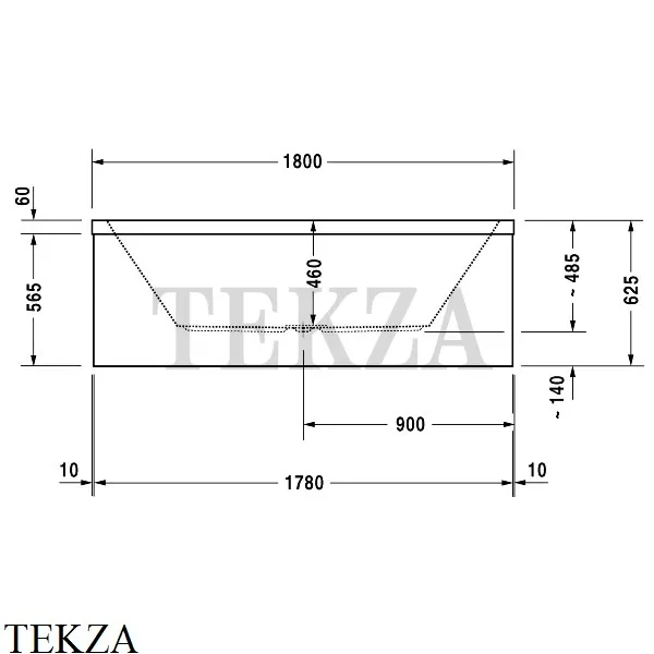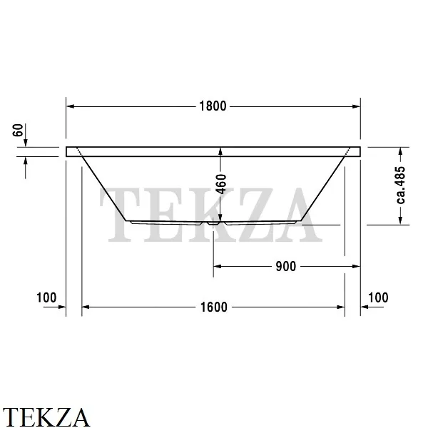 Ванна прямоугольная, встраиваемая или с панелями Duravit Starck с двумя наклонами для спины, с переливом, санитарный акрил 5 мм.