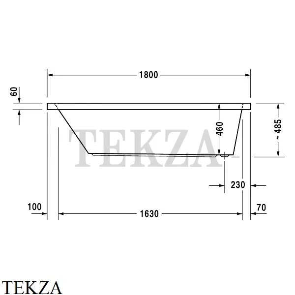 Ванна прямоугольная, встраиваемая или с панелями Duravit Starck с одним наклоном для спины, с переливом, санитарный акрил 5 мм.