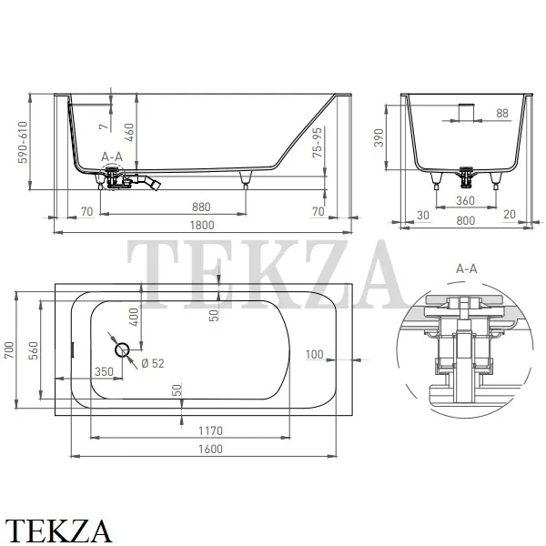 Стоимость указана за матовую ванну 102122M, регулируемые опоры.