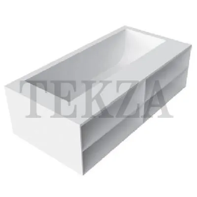 Ванна прямоугольная встраиваемая Antonio Lupi Biblio из материала Corian, с фронтальными открытыми нишами, с задним и боковым левым или правым бортом под смеситель.