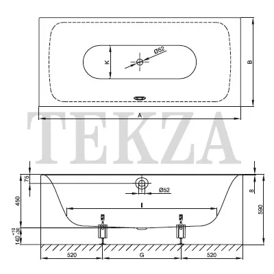 Специальный слив-перелив с возможностью наполнения снизу O 52 мм, необходимы дополнительные 20 мм под ванной