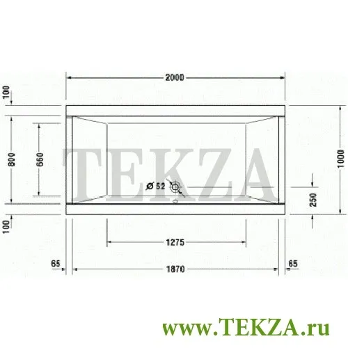 Ванна прямоугольная, встраиваемая или для панелей Duravit Starck с двумя наклонами для спины, санитарный акрил 5 мм.