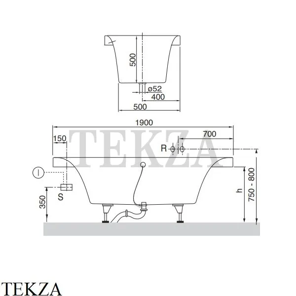 В комплекте ножки для ванны (самоклеящихся), регулируются от 130 - 180 мм.