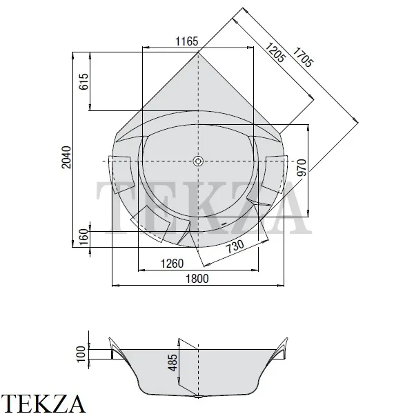 - Длина дна:1165 мм