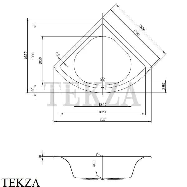 Угловая ванна Hoesch Scelta, встраиваемая версия.