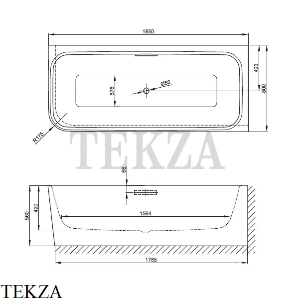 Ванна изготовлена из титановой стали, покрыта эмалью - 3,5 мм.