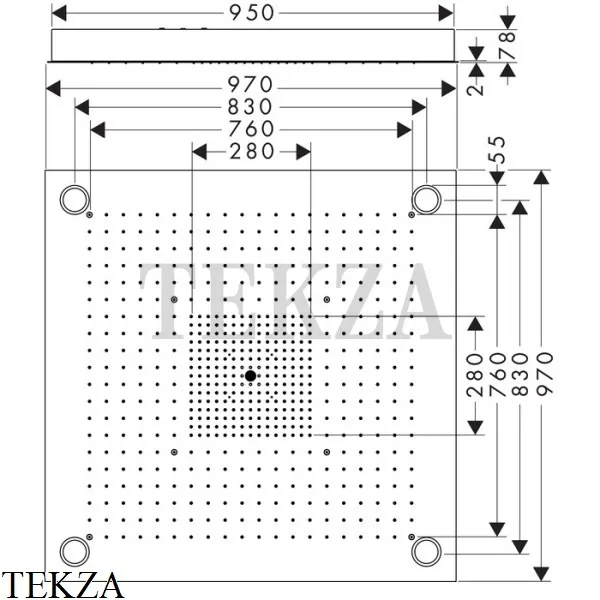 Верхний душ с подсветкой Axor ShowerHeaven 970 x 970 мм, с подсветкой.
