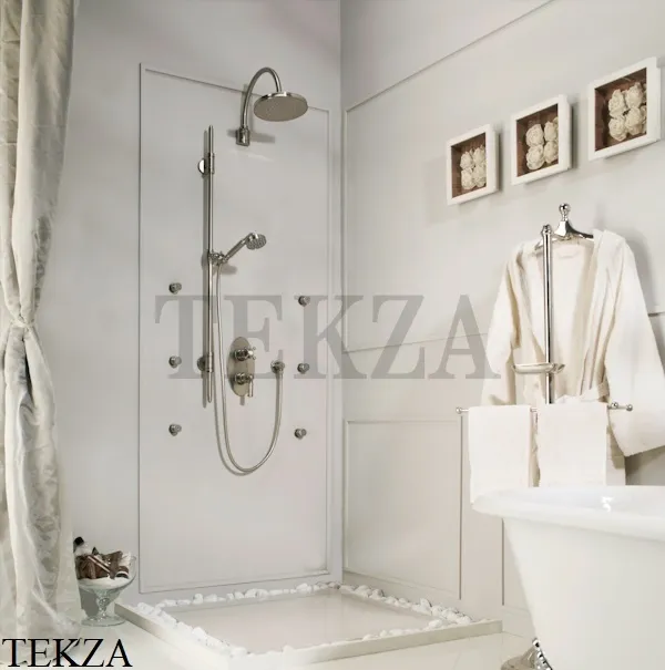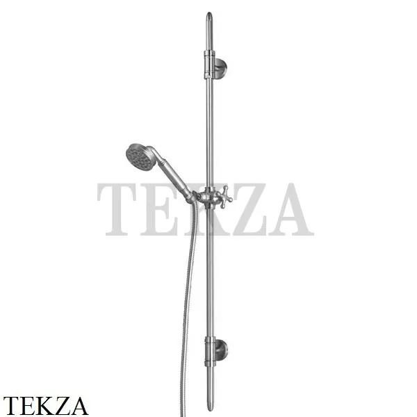 В комплекте с ручным душем LIBERTY-GOM на регулируемом держателе и гибким шлангом А03045 из латуни двойного фальцевания 1750 мм.