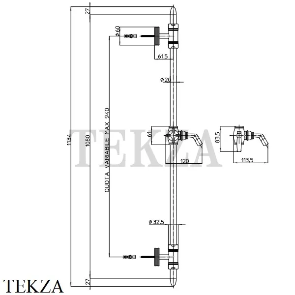 Душевая штанга Bossini LIBERTY ASTA с регулируемыми держателями (макс. межосевое расстояние 94 см).