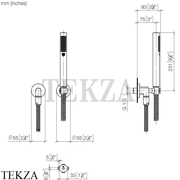 Душевой гарнитур Dornbracht TARA, ручной душ, шланг, с отдельными розетками.