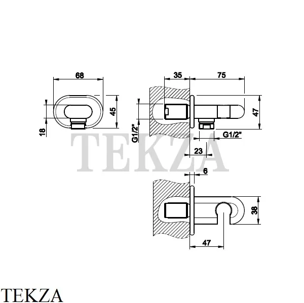 Держатель для душевой лейки с выводом воды на ½ 33761 Gessi Goccia.