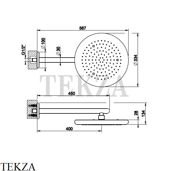 Душевая головка Gessi Goccia шарнирная для настенного крепления на 1/2" с легкой очисткой.