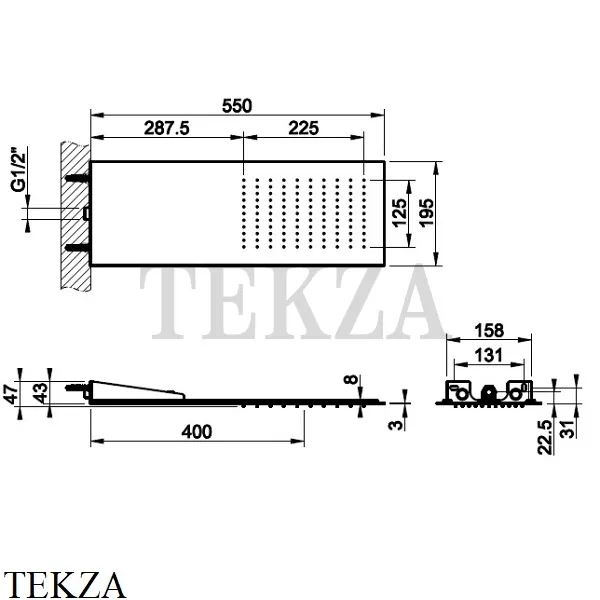 Верхний душ настенный Gessi Private Wellness TREMILLIMETRI QUADRO 200