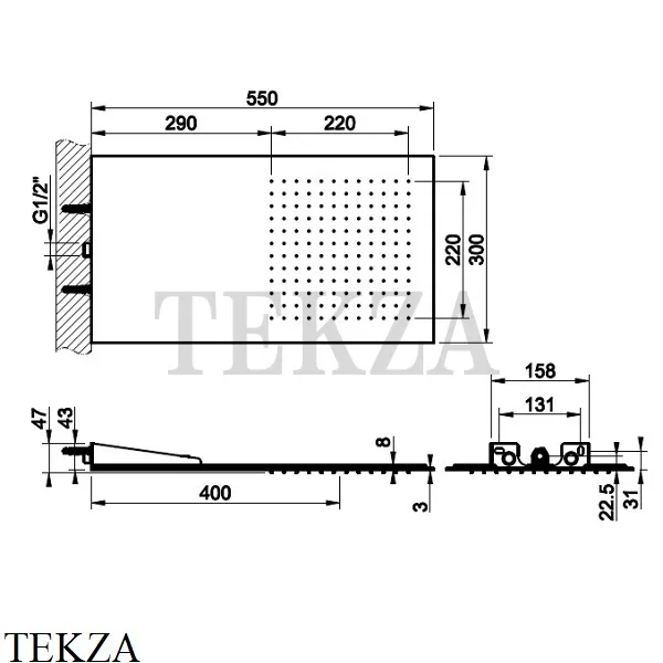 Верхний душ настенный Gessi Private Wellness TREMILLIMETRI QUADRO 300