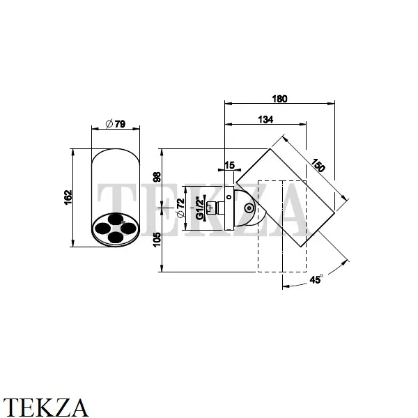 Душевая головка для настенного крепления Gessi SPOTWATER, поворотная с шарниром, из латуни.