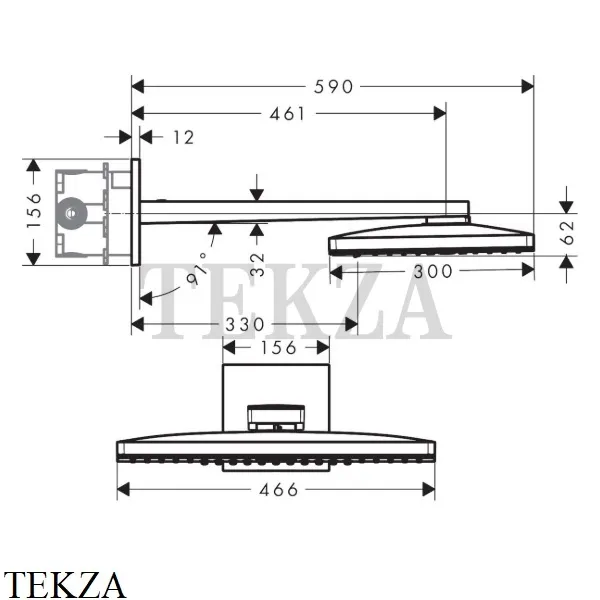 размер душевого диска: 460 x 300 мм