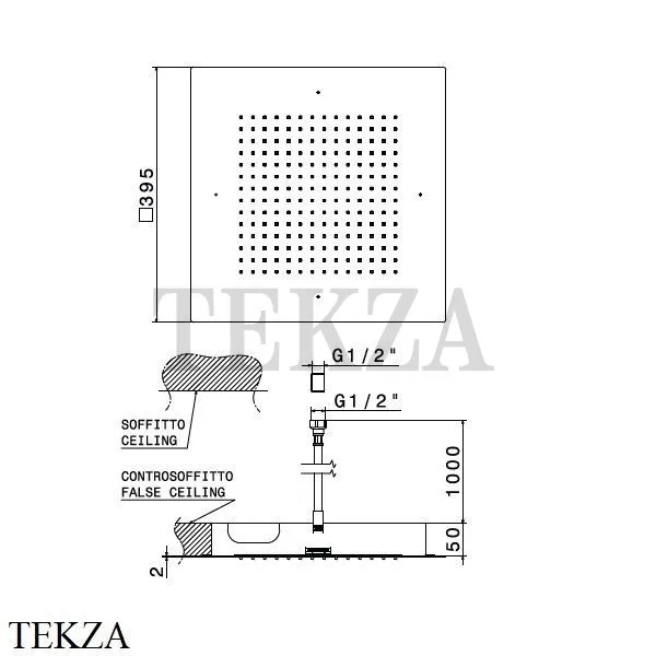 Квадратная скрытая стальная душевая лейка с дождевой струей Newform.